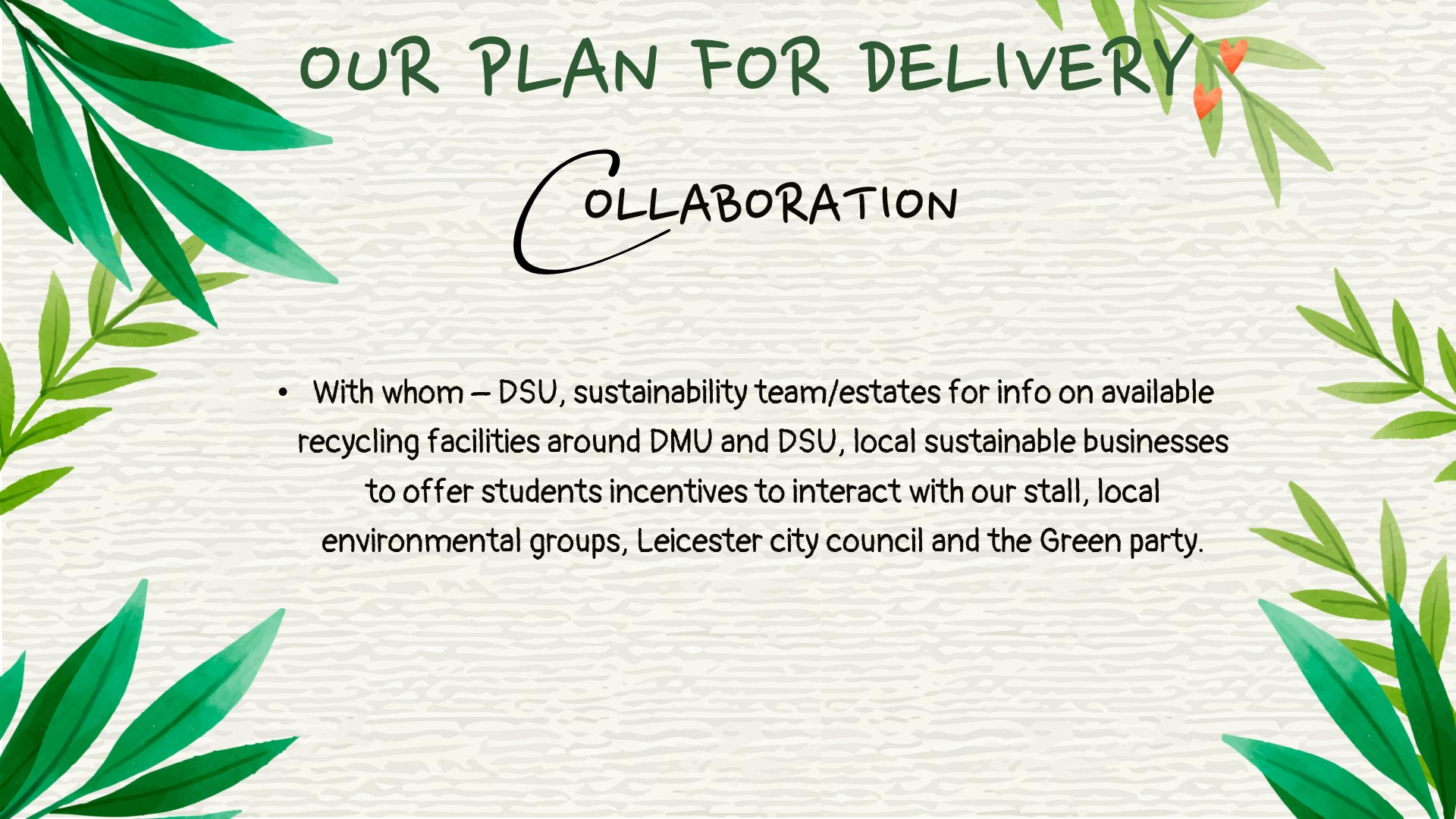 As part of the Regulatory, Ethical & Sustainable Comms module in year 1 we were asked to produce an event and then deliver a client presentation about this. Our client was the student union at De Montfort University and the aim of the client pitch was to win a stall holder place at the Welcome Week in September 2024, within the union.